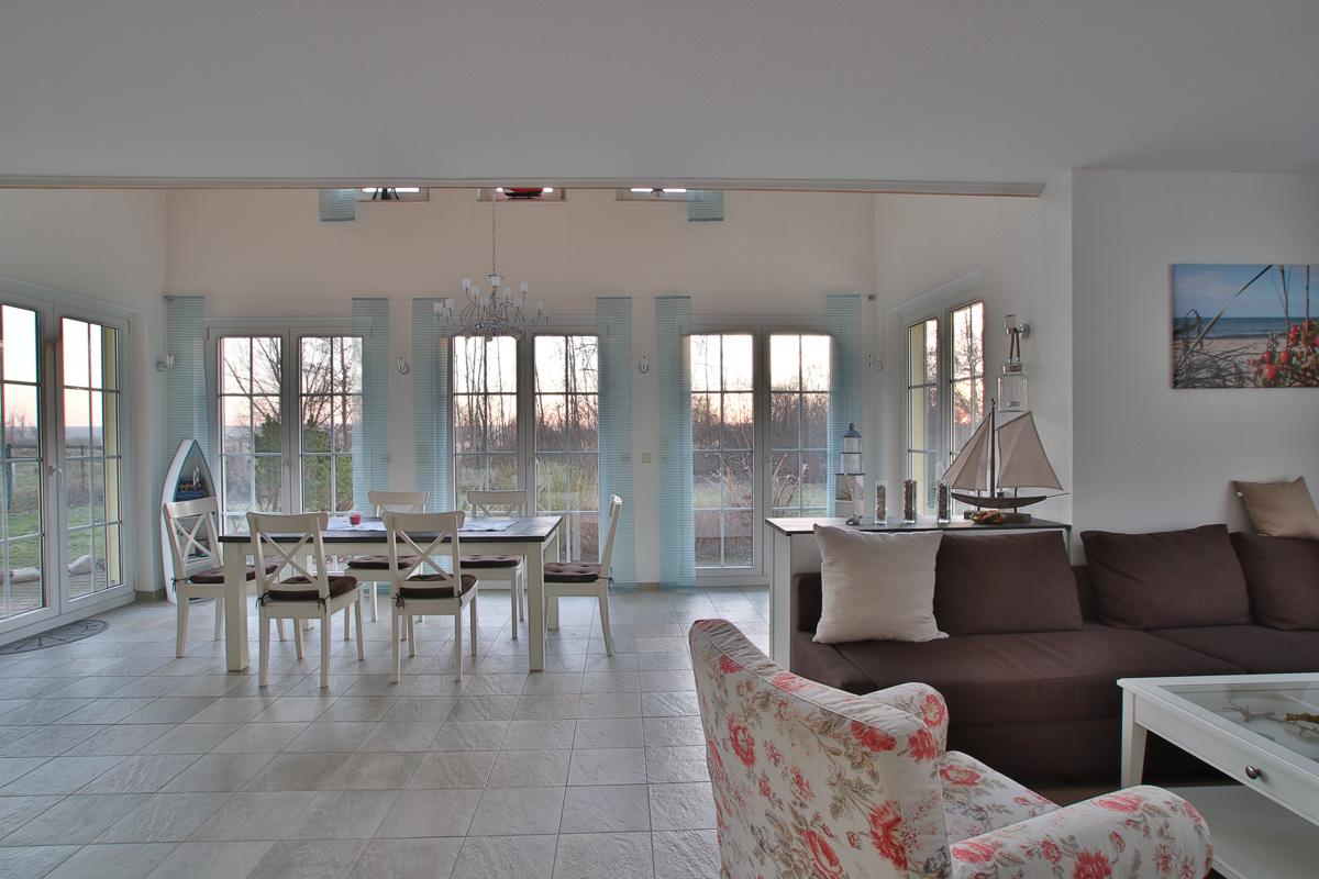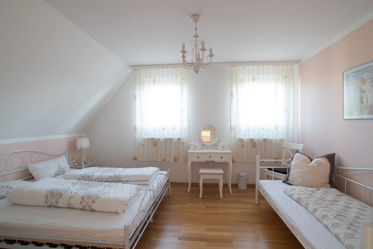 Das Ferienhaus hat eine Wohnfläche von 190 m², mit einem Gartenanteil von 300 m². 2 Schlafzimmer sind mit Doppelbetten ausgestattet (180 x 200 cm) und in 2 weiteren Schlafzimmern stehen je ein Doppelbett und ein Einzelbett. Die Einzelbetten sind 140 x 200 cm groß. Ein Badezimmer mit Dusche befindet sich im Untergeschoss und ein Bad mit Dusche und Wanne befindet sich im Obergeschoss. Ein Fön ist auch vorhanden. Im Hauswirtschaftsraum finden Sie eine Waschmaschine. Schöne Stunden in geselliger Runde können Sie im Obergeschoss im Billiardzimmer mit Musikbox verbringen. Das Ober- und das Dachgeschoss sind komplett mit Holzparkett ausgelegt. Das gesamte Haus wird über eine Fußbodenheizung beheizt. Im Wohnzimmer finden Sie eine gemütliche Sitzecke, TV und Radio, CD- und DVD-Spieler sowie einen großen Esstisch. An kalten Tagen sorgt ein Kamin für Gemütlichkeit. Die offene Küche hält alle modernen Geräte vor, wie Geschirrspüler, Herd mit Backofen, Mikrowelle, Kühlschrank mit Gefrierteil, Kaffeemaschine, Toaster usw. Im Erdgeschoß befindet sich ein separater Garderobenraum. Auf die kleinsten Gäste warten ein Kinderreisebett, ein Hochstuhl, ein Bollerwagen und eine Schaukel. An den Fenstern im Erdgeschoß sind Außenjalousien angebracht. Sämtliche Fenster sind mit Fliegengitter ausgestattet.Vom Wohnzimmer gelangen Sie auf eine Terrasse. Im Garten stehen noch ein Strandkorb und hier gibt es eine Tonnen-Sauna.