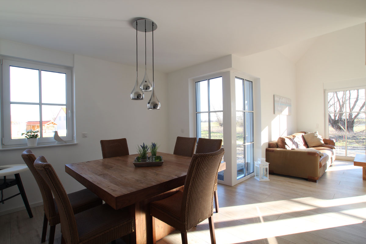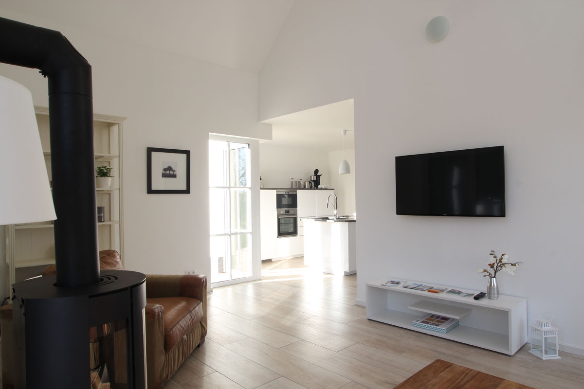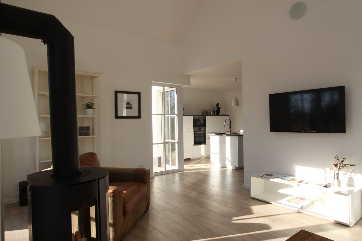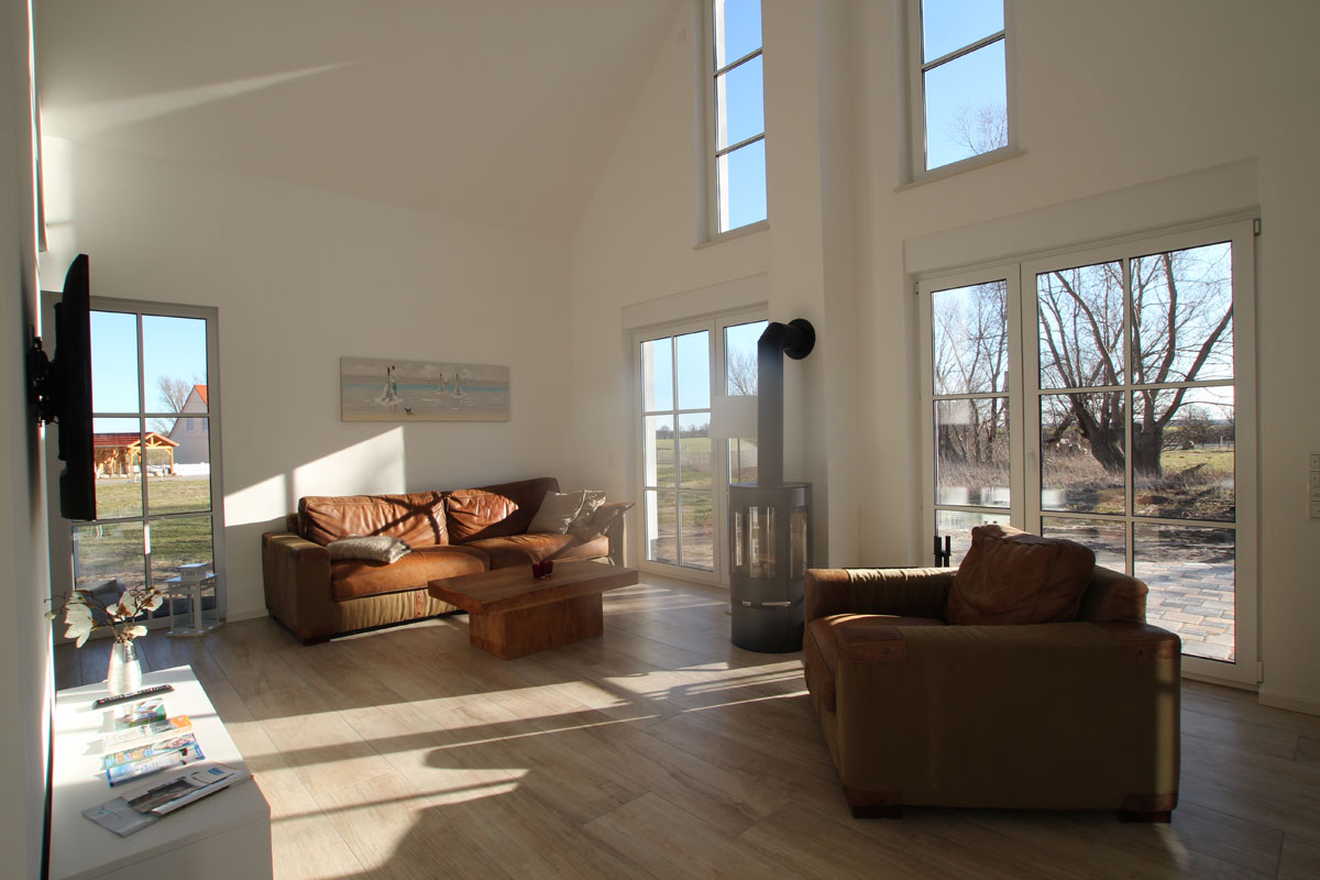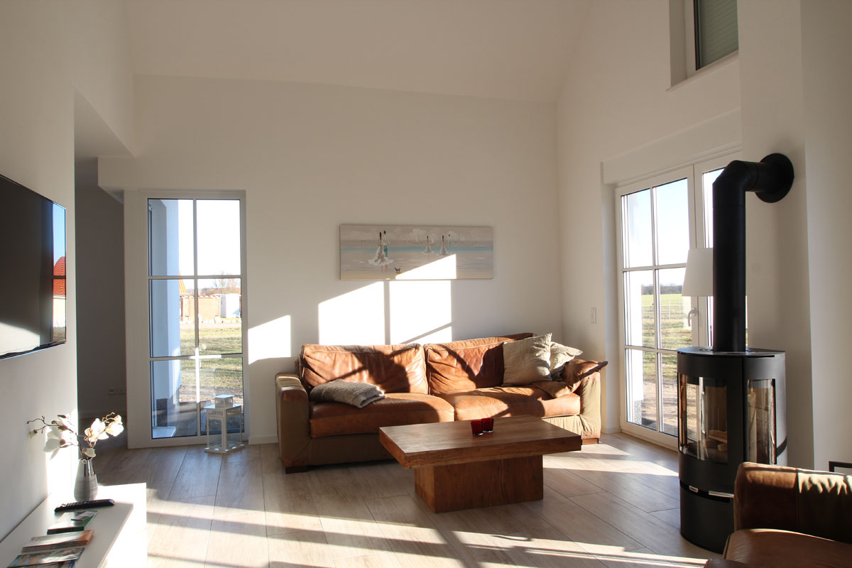 Das Haus "Clara" hat ca. 160 qm Wohnfläche und verfügt im Erdgeschoss über ein Wohnzimmer mit offener und moderner Küche; ein Schlafzimmer mit Doppelbett sowie ein Duschbad welches behinderten geeignet ist. IM OG warten auf Sie 2 weitere Schlafzimmer ebenfalls mit Doppelbetten versehen, alle Doppelbetten haben die Größe 180 x 200 cm. Im OG finden Sie das Vollbad mit Wanne und Dusche, 2 Waschbecken sowie die Sauna. Von dem Bad mit Sauna gelangen Sie auf den Balkon. Weiterhin finden Sie im OG ein Gäste-WC. Alle Fenster im gesamten Haus haben Außenrollläden. Das Haus hat weiterhin einen Carport mit Abstellraum und es haben 2 PKW-s Platz und es wartet ein großer Garten auf Sie mit Terrasse und Sitzmöbeln sowie Spielgeräte für die Kinder. Kinderreisebett und Hochstuhl stehen ebenfalls zur Verfügung.
