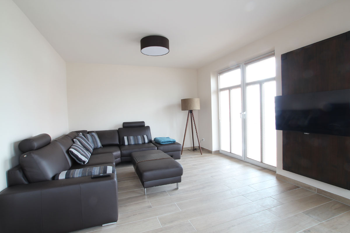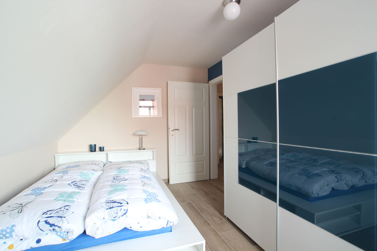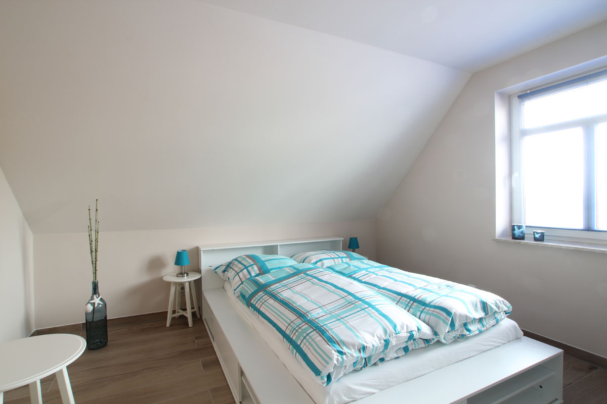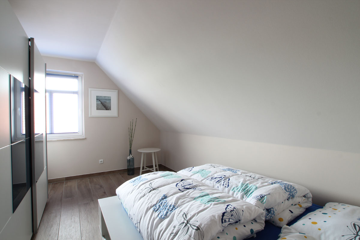 Im Erdgeschoss des Hauses befindet sich das sehr geschmackvolle Wohnzimmer, mit offener Küche. Hier stehen TV und Radio, sowie CD- und DVD-Spieler bereit. Die offene Küche beinhaltet alle modernen Küchengeräte, wie Geschirrspüler, Herd mit Backofen, Kühlschrank mit Gefrierteil, Kaffeemaschine, Wasserkocher, Toaster usw. Vom Wohnzimmer kommt man auf die Terrasse mit Garten. Im Garten stehen Sandkasten und Spielgeräte für die kleinen Gäste bereit. Im Erdgeschoss befinden sich noch eine Gästetoilette und ein Hauswirtschaftsraum, in dem auch die Waschmaschine untergebracht ist. Im Obergeschoss sind 3 Schlafzimmer. Ein Schlafzimmer hat ein Doppelbett in der Größe 180x200 cm( ohne Fernseher) und die beiden anderen Schlafzimmer haben je ein Doppelbett mit den Abmessungen 140x200 cm mit einem Fernseher. Im Obergeschoss befindent sich noch ein sehr geräumiges Badezimmer mit Dusche. Das gesamte Haus wird mit einer Fußbodenheizung beheizt. Für die kleinsten Gäste stehen noch ein Kinderhochstuhl und ein Treppenschutzgitter bereit. WLAN steht kostenfrei zur Verfügung.2 KfZ-Stellplätze befinden sich am Haus.Es erfolgt eine persönliche Schlüsselübergabe und Einweisung in die Wohnung sowie eine Vorortbetreuung durch unsere Mitarbeiter.Ausstattung