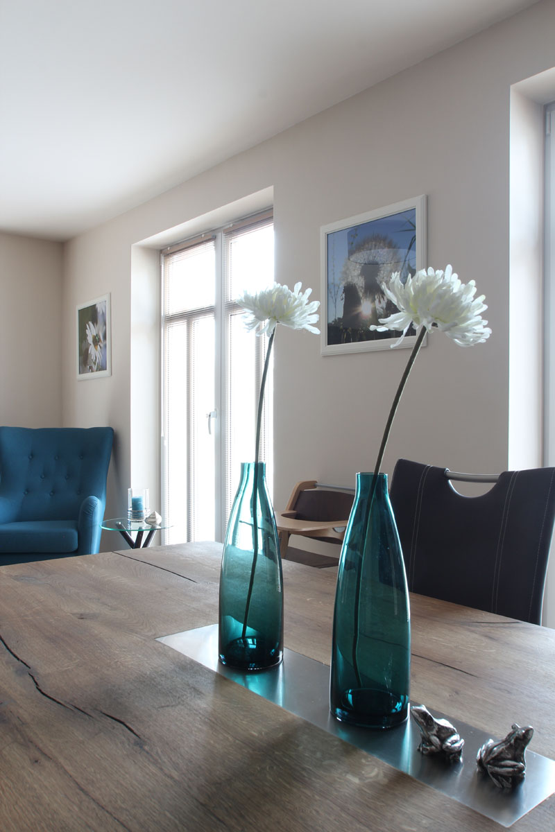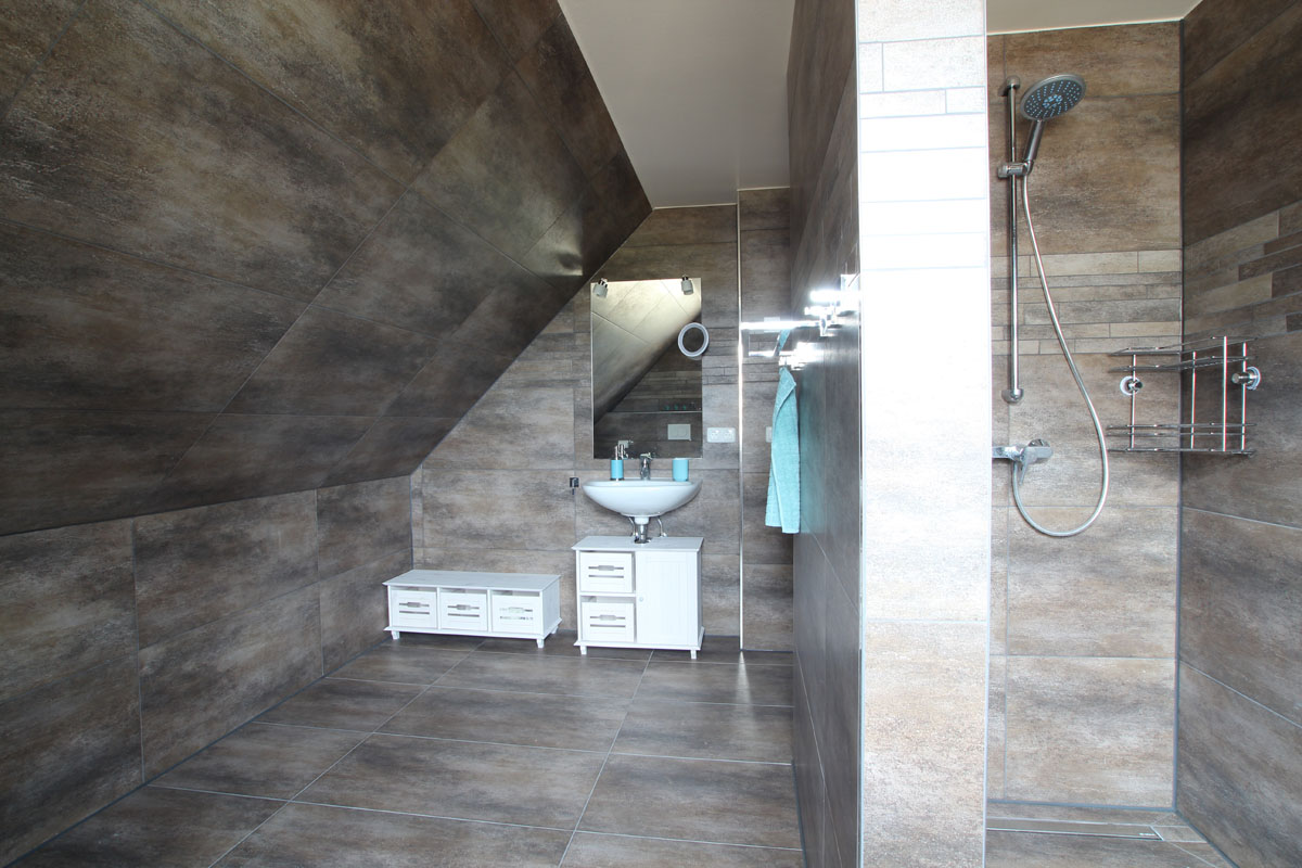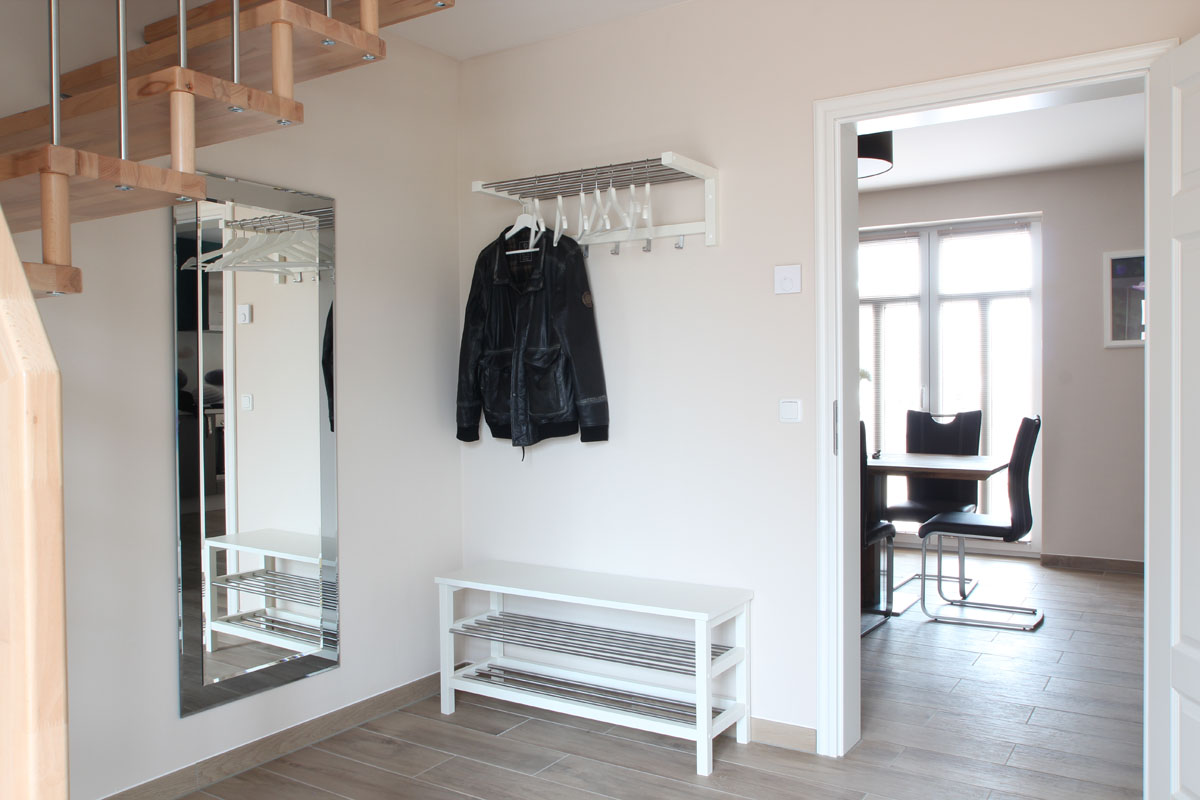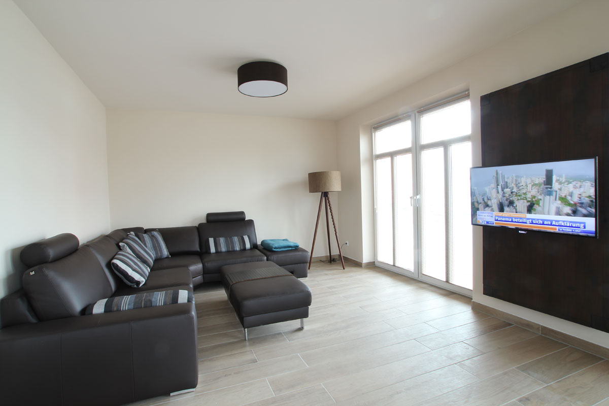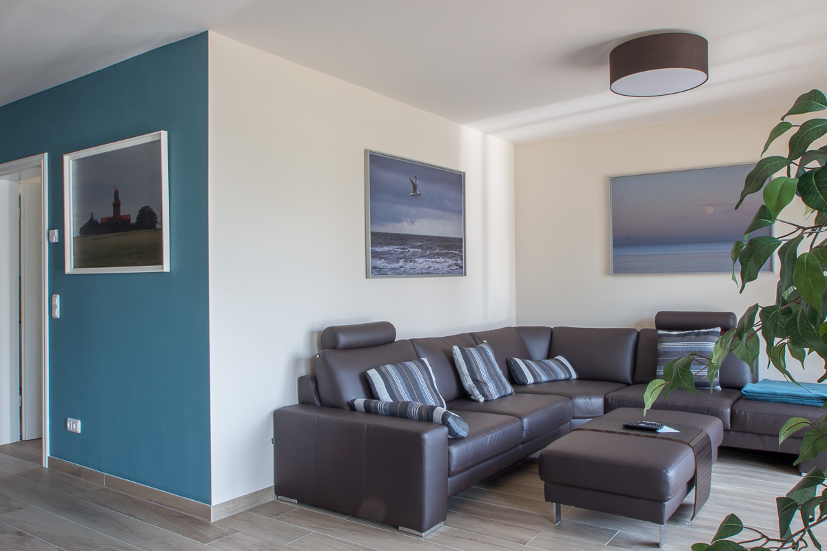 Im Erdgeschoss des Hauses befindet sich das sehr geschmackvolle Wohnzimmer, mit offener Küche. Hier stehen TV und Radio, sowie CD- und DVD-Spieler bereit. Die offene Küche beinhaltet alle modernen Küchengeräte, wie Geschirrspüler, Herd mit Backofen, Kühlschrank mit Gefrierteil, Kaffeemaschine, Wasserkocher, Toaster usw. Vom Wohnzimmer kommt man auf die Terrasse mit Garten. Im Garten stehen Sandkasten und Spielgeräte für die kleinen Gäste bereit. Im Erdgeschoss befinden sich noch eine Gästetoilette und ein Hauswirtschaftsraum, in dem auch die Waschmaschine untergebracht ist. Im Obergeschoss sind 3 Schlafzimmer. Ein Schlafzimmer hat ein Doppelbett in der Größe 180x200 cm( ohne Fernseher) und die beiden anderen Schlafzimmer haben je ein Doppelbett mit den Abmessungen 140x200 cm mit einem Fernseher. Im Obergeschoss befindent sich noch ein sehr geräumiges Badezimmer mit Dusche. Das gesamte Haus wird mit einer Fußbodenheizung beheizt. Für die kleinsten Gäste stehen noch ein Kinderhochstuhl und ein Treppenschutzgitter bereit. WLAN steht kostenfrei zur Verfügung.2 KfZ-Stellplätze befinden sich am Haus.Es erfolgt eine persönliche Schlüsselübergabe und Einweisung in die Wohnung sowie eine Vorortbetreuung durch unsere Mitarbeiter.Ausstattung