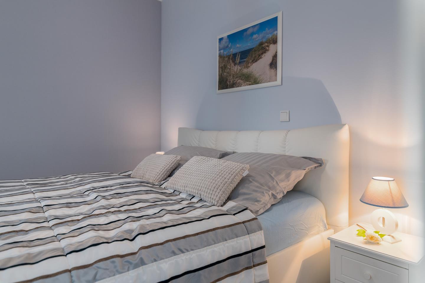 Es empfängt Sie in erster Reihe, nur 70m vom Strand entfernt, eine sonnige, komfortable 2022 frisch renovierte 2-Zimmer-Wohnung im Hochparterre mit kostenfreien WLAN, großem Südbalkon, allround Insektenschutz und Gaskamin.