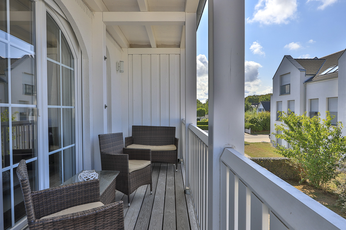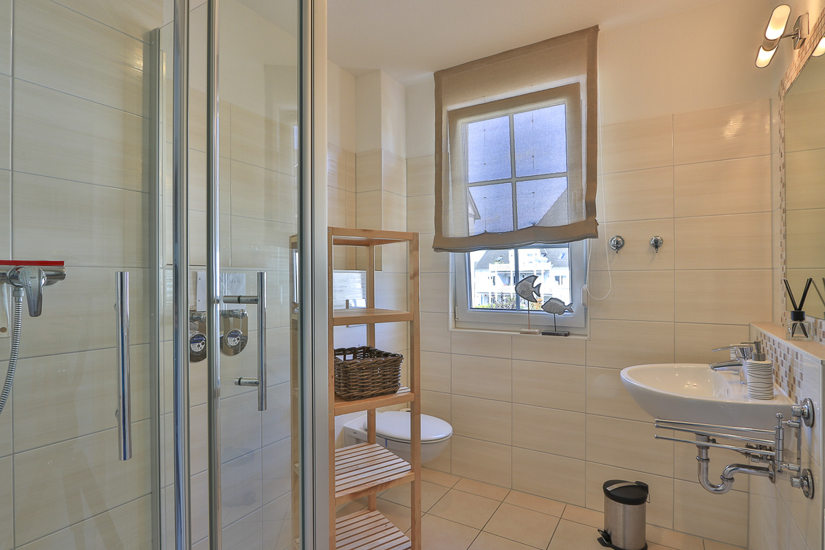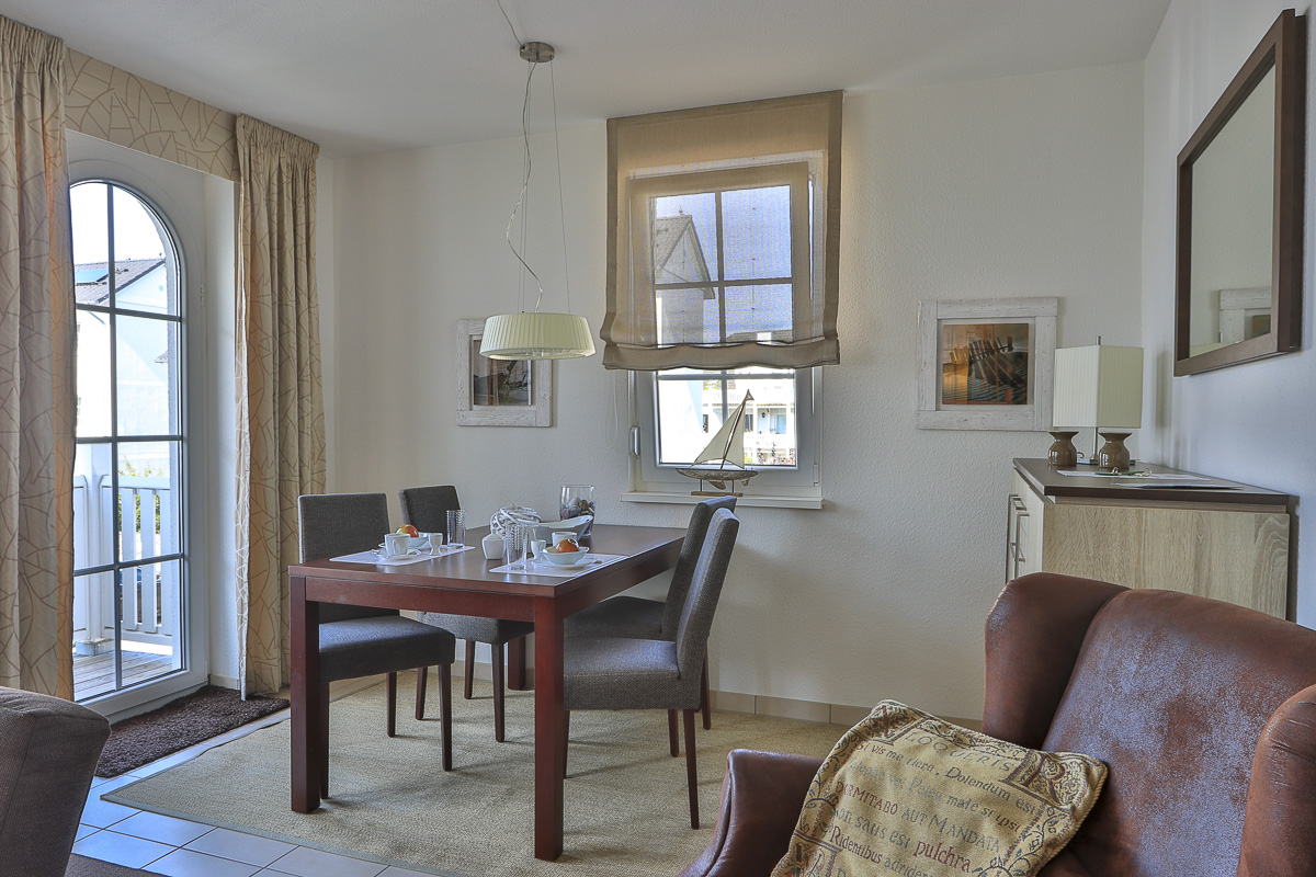 Die wunderschöne Ferienwohnung befindet sich im 1. OG und hat ein Wohnzimmer mit überdachten Balkon, bequemer Couch, TV, CD und DVD-Spieler. Die modern eingerichtete Küchenzeile ist voll ausgestattet mit Geschirr, Besteck, Herd, Backofen, Geschirrspüler, Kühlschrank mit Gefrierteil,Kaffeemaschine und Toaster. Den Gästen steht kostenfrei WLAN zur Verfügung. Das Schlafzimmer hat ein Doppelbett in der Größe von 180x200 cm. Das Tageslichtbad hat eine großzügige Dusche. Im vorhandenen Fahrradabstellraum können Sie Ihre mitgebrachten Räder sicher unterbringen.