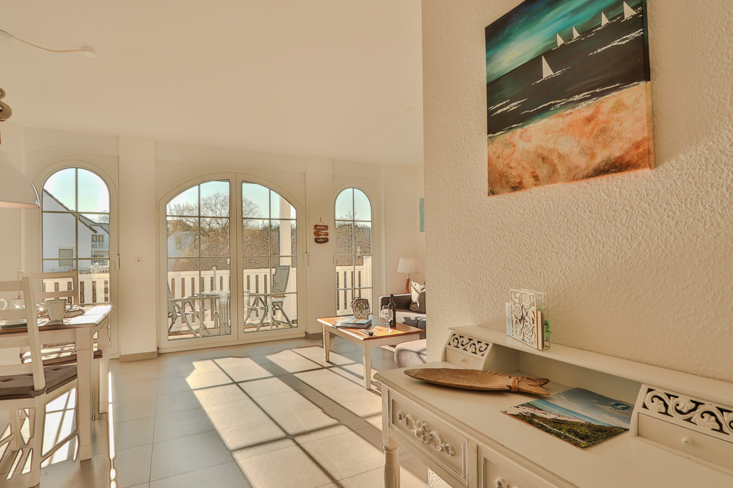 Wir heißen Sie herzlich Willkommen an der wunderschönen Ostseeküste Mecklenburg-Vorpommerns.Bei uns genießen Sie Ihren Urlaub auf 61qm, die sich auf einen großzügigen Wohn- und Essbereich, ein separates Schlafzimmer, eine offene Küche sowie einen herrlichen Süd-West-Balkon mit Blick ins Grüne erstrecken.