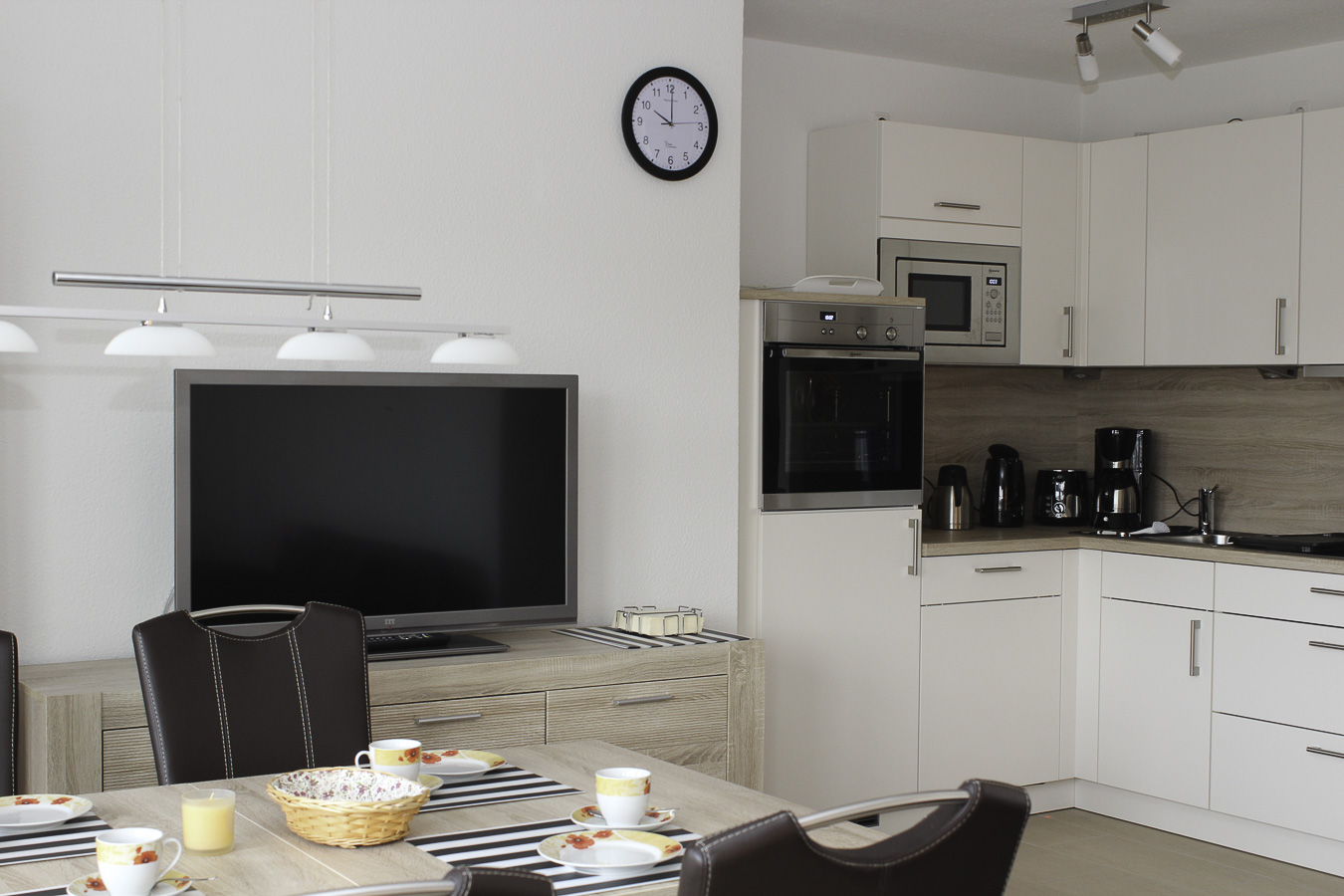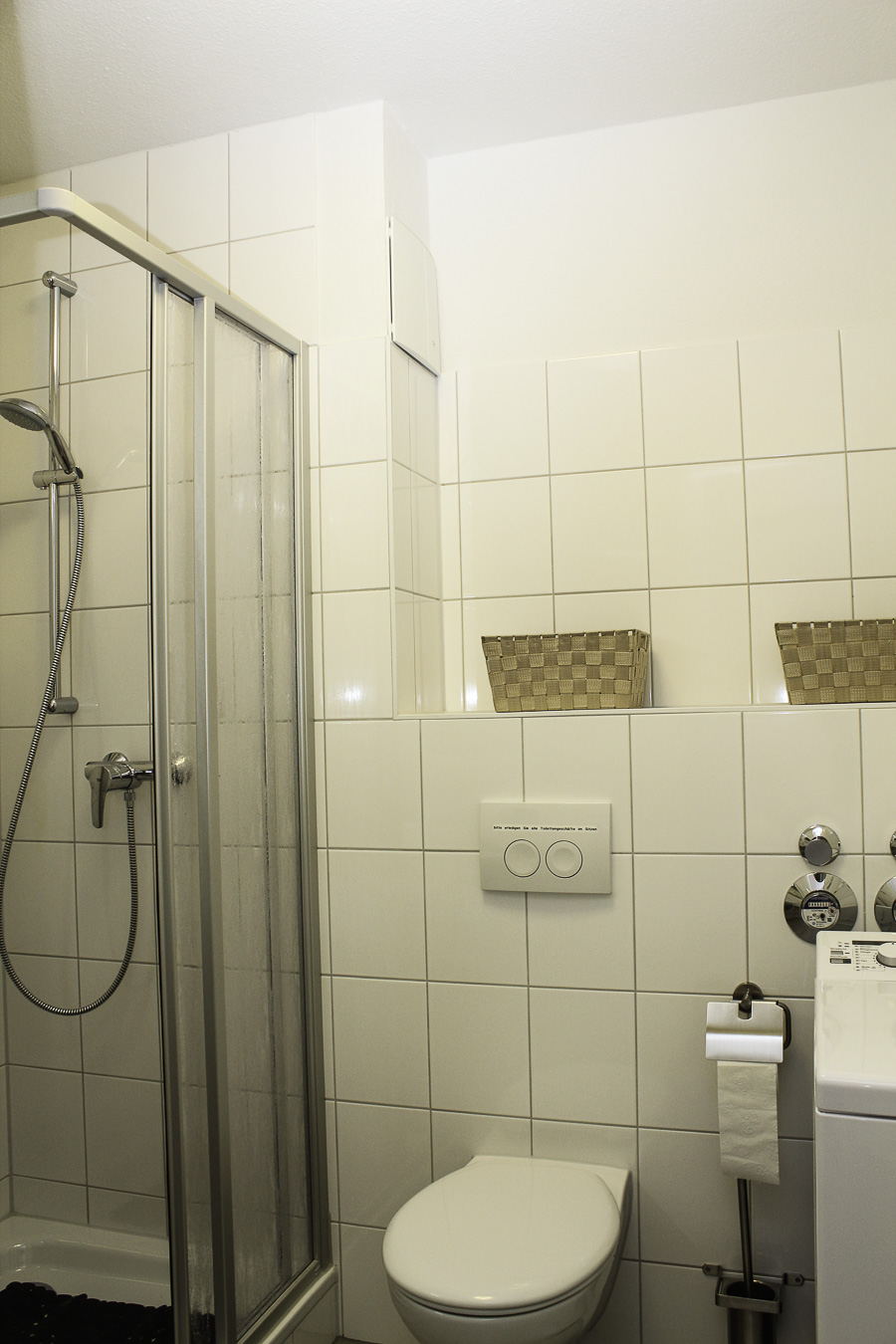 Im Badezimmer kann eine Münzwaschmaschine genutzt werden. Der Fußboden ist gefliest und wird mit einer Fußbodenheizung beheizt. Die Küche ist offen und mit allen modernen Küchengeräten inkl. Geschirrspüler ausgestattet. Alle Fenster sind mit Außenjalousien versehen.