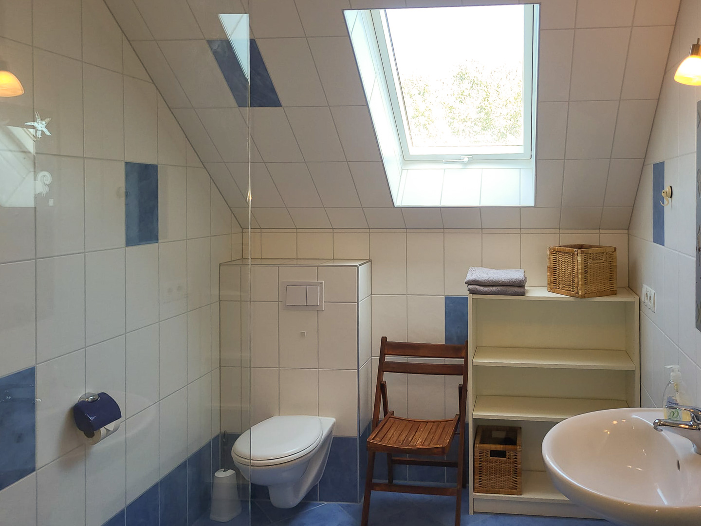 Das große Duschbad im Obergeschoss verfügt über einen fußbodengleichen Zugang. Das gesamte Haus ist mit Fußbodenheizung ausgestattet und bietet dadurch ganzjährigen Wohnkomfort.