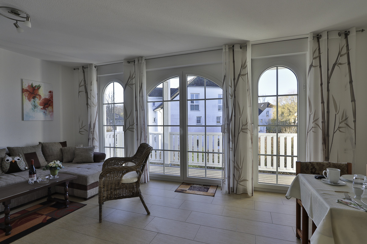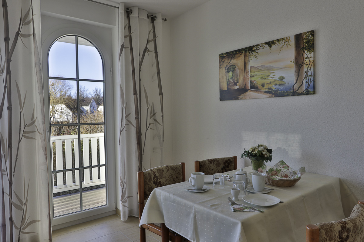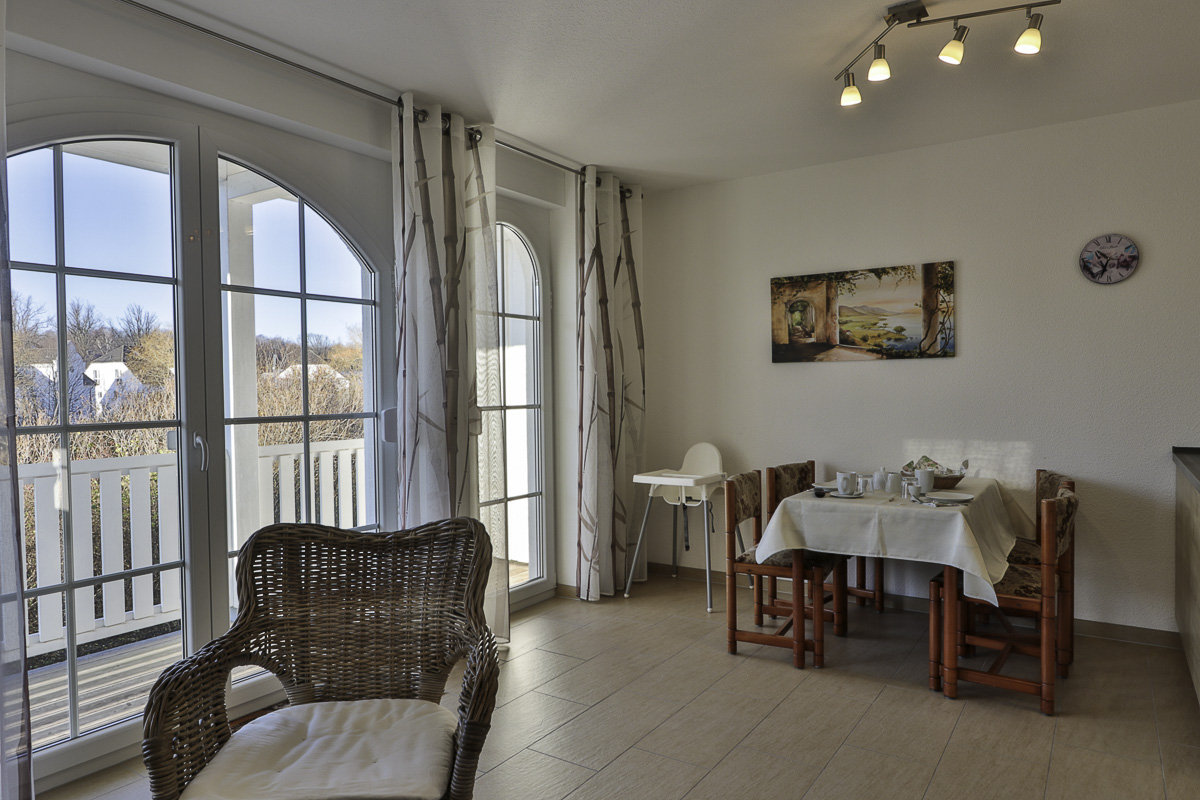 Die Ferienwohnung mit 67qm befindet sich in der Villa " Annette". Die Ferienanlage der "weißen Villen im Bäderstil" liegt 300 m vom schönen Sandstrand entfernt. Die helle und sonnige Wohnung bietet 1 Schlafzimmer mit Doppelbett, 1 Schlafzimmer mit 2 Einzelbetten ( Rollbett) ein geräumiges Wohnzimmer mit Schlafeckcouch und integrierter Küche, ein Duschbad und einen PKW Stellplatz. Vom Wohnzimmer gelangen Sie direkt auf den großzügigen Balkon. An technischer Ausstattung erwarten Sie DVD-Player, Radio, Sat TV und kostenlose WLAN Nutzung. Die voll ausgestattete Einbauküche verfügt über einen Herd mit Backofen, einen Kühlschrank mit Gefrierfach, eine Kaffeemaschine, einen Toaster, einen Wasserkocher sowie genügend Geschirr und Töpfe. Die Wohnung ist komplett gefliest und mit Fussbodenheizung versehen, alle Fenster haben Aussenjalousien. Kinderbett und -hochstuhl stehen ebenfalls zur Verfügung; für den Balkon Balkonmöbel. Die mitgebrachten oder auch ausgeliehenen Fahrräder können die Gäste im Fahrradabstellraum sicher unterbringen.