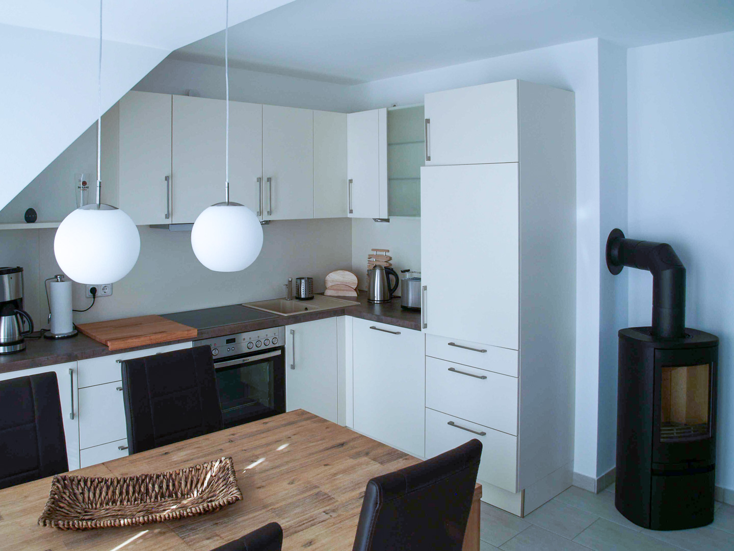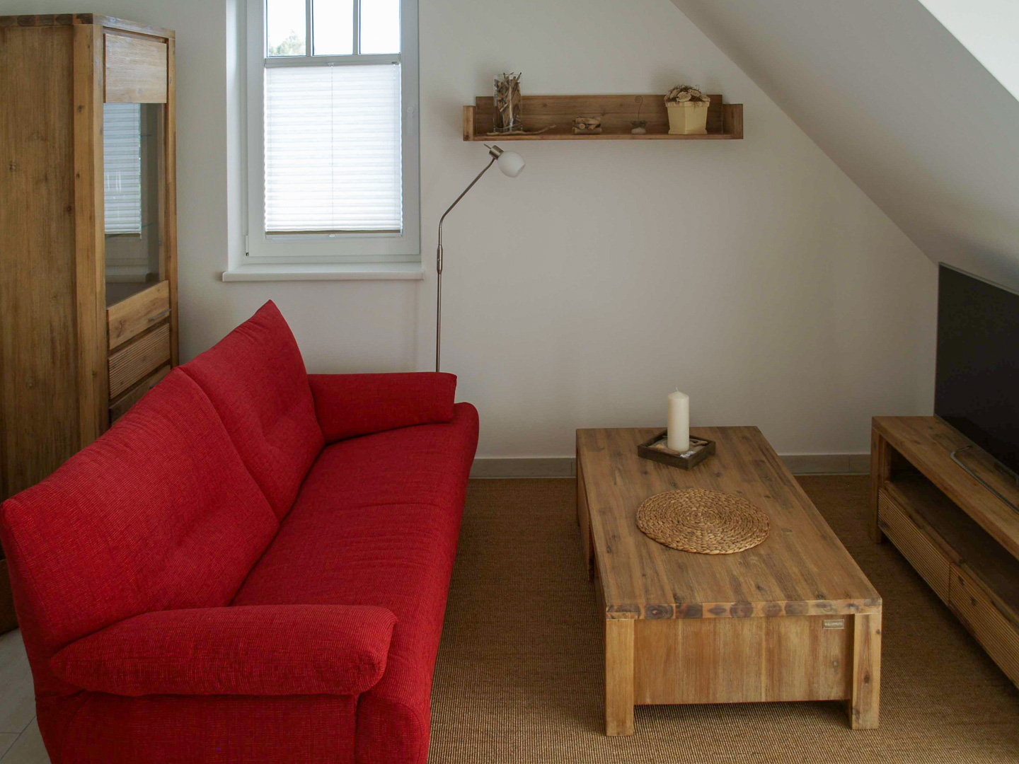 Die stilvoll eingerichtete Wohnung bietet zwei Schlafzimmer, ideal für Paare, Familien oder Freunde. Im gemütlichen Wohnzimmer mit Kamin können Sie nach einem Strandtag entspannen und stimmungsvolle Abende verbringen – perfekt zu jeder Jahreszeit.