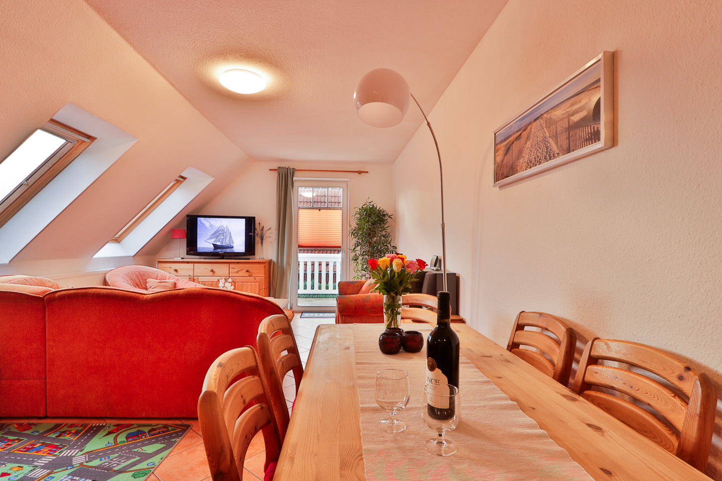 Verdunklung innen, Schlafsofa, Esstisch, TV