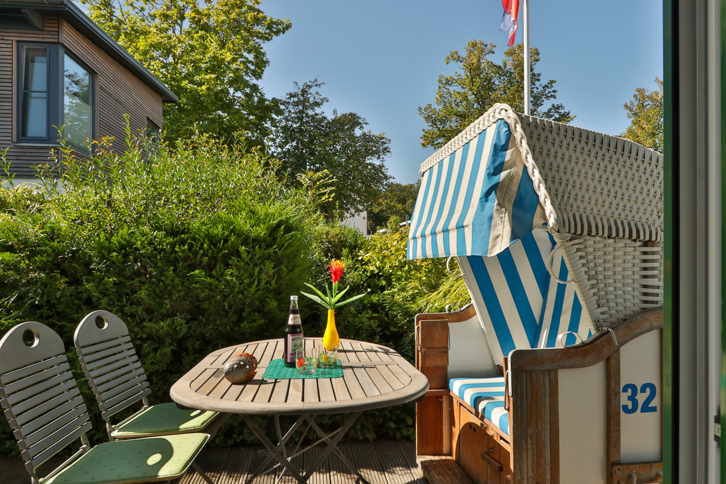 Garten, Terrasse überdacht, Parkplatz, Gartenmöbel, Strandkorb Lage · Ostseebad Nienhagen