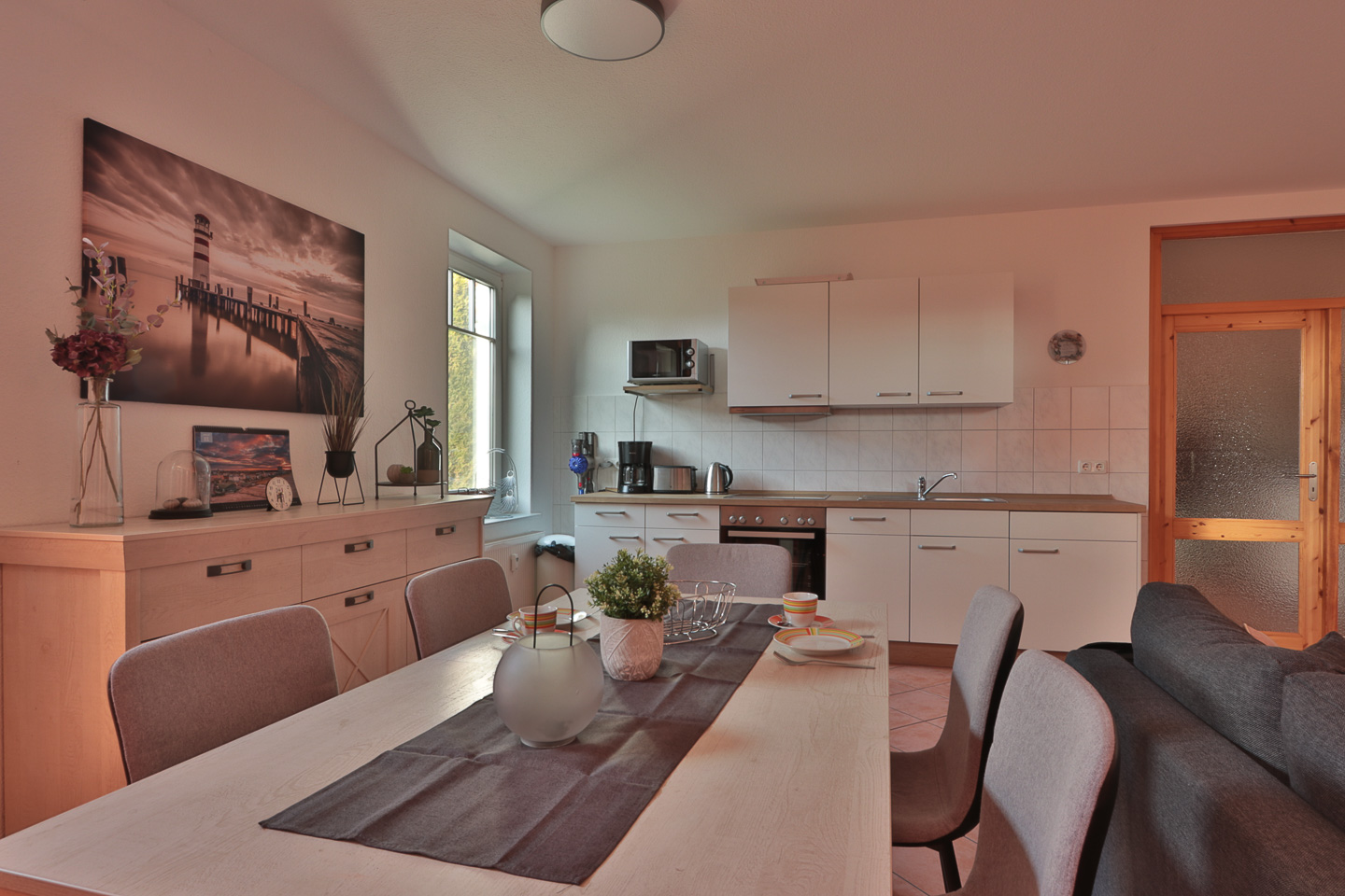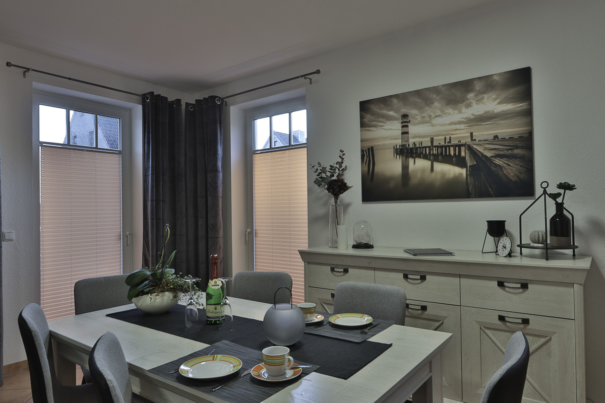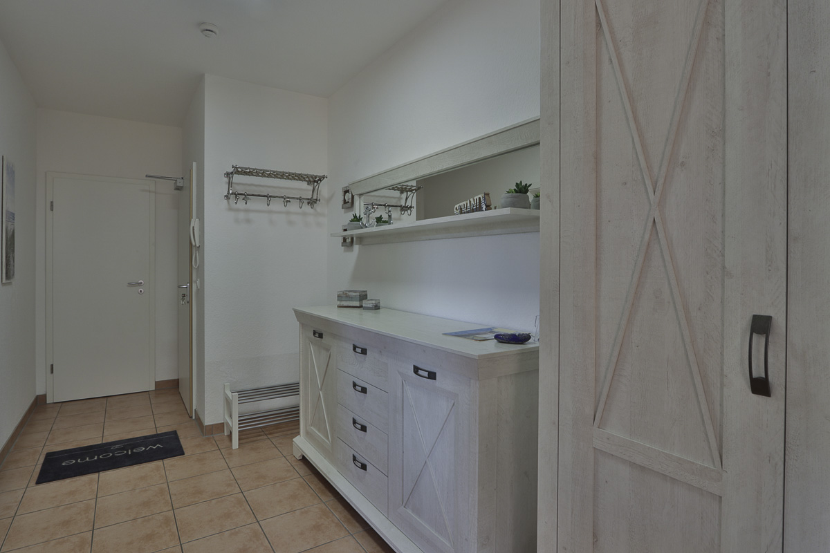 Die modern, renovierte,maritim eingerichtete großzügige Wohnräume sind geeignet für 4 Personen. Die Wohnung ist ruhig gelegen, mit eigener Terrasse und kleiner Rasenfläche. Wenn Sie einmal nicht mit dem Auto unterwegs sein möchten, können Sie gern die bereitgestellten Räder nutzen und den Gespensterwald, welcher sich direkt gegenüber des Hauses befindet, erkunden. Im Schlafzimmer besteht die Möglichkeit, 2 Kinder auf der Schlafcouch übernachten zu lassen. Für die Kleinsten steht ein Kinderbett und ein Hochstühlchen bereit. Die moderne Küche ist mit einem Geschirrspüler ausgestattet. Im Wohnzimmer können CD-, DVD-Player, Netflix und das WLAN kostenfrei genutzt werden. Es steht auch dort eine Schlafcouch zur Verfügung. Der Strand ist fußläufig zu erreichen. Eine Vermietung an Gäste mit Hund, muss erst beim Eigentümer angefragt werden.