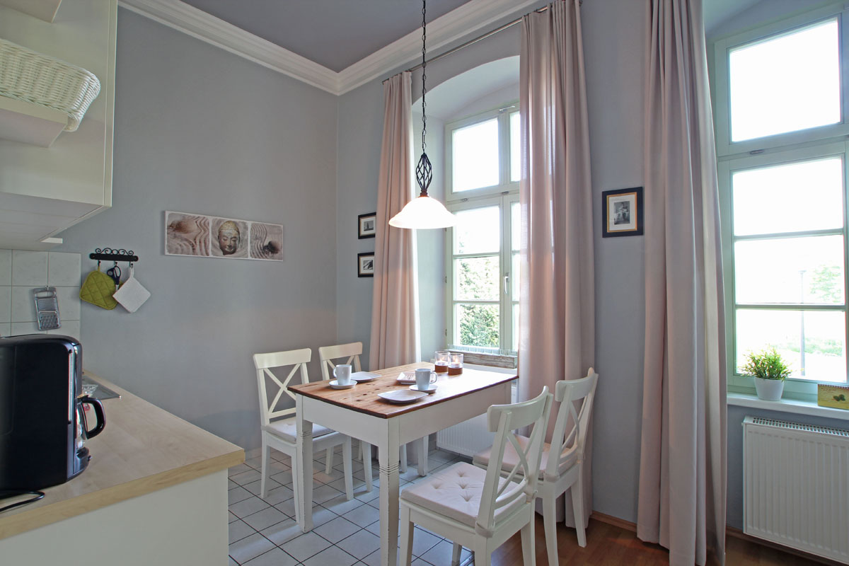 Ihr Urlaubsdomizil ist ein denkmalgeschütztes, saniertes Herrenhaus mit komfortablen Ferienwohnungen. Das Appartement 2 mit Blick ins Grüne und den umliegenden Wiesen sowie dem am Haus angrenzenden Skulpturenpark bietet dem Gast Ruhe und Entspannung. Die komfortabel eingerichtete Ferienwohnung bietet Platz für 4-5 Personen. Im seperaten Schlafzimmer befindet sich ein Doppelbett und ein Einzelbett. 2 weiteren Personen bietet die Schlafcouch im Wohnzimmer eine Übernachtungsmöglichkeit. Die modern, im maritimen Style eingerichtete Wohnung erfüllt alle Wünsche des Gastes. Der angebotene Brötchenservice macht den Aufenthalt im Herrenhaus zu Ihrem Wohlfühlaufenthalt.