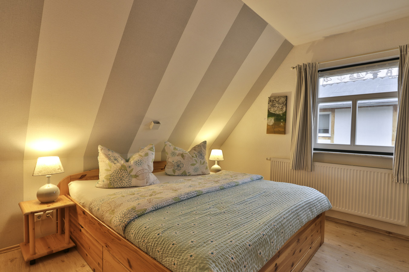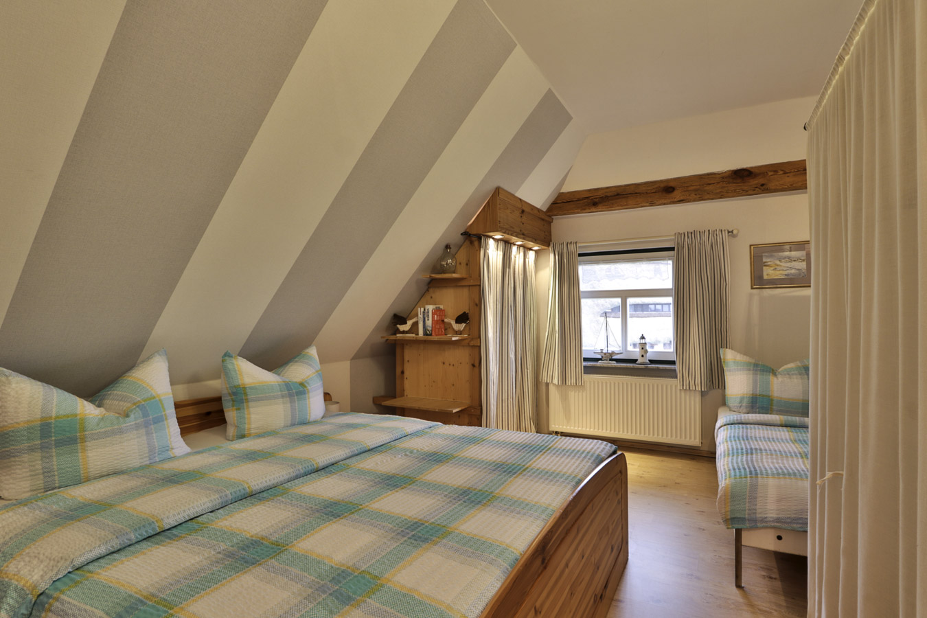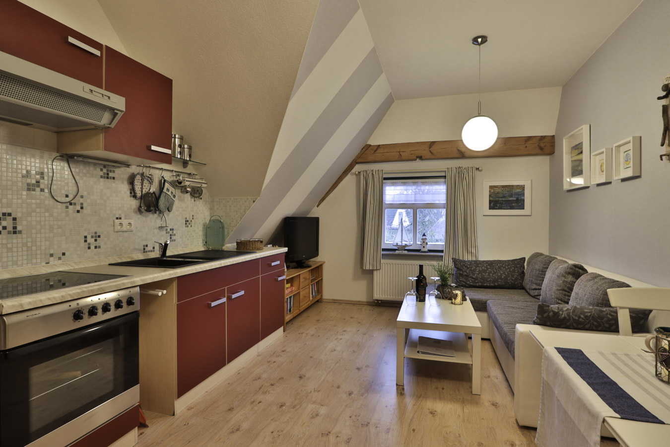 Unser wunderschönes komplett sanierte Reetdachhaus beherbergt 3 komfortable Ferienwohnungen jeweils mit Wohnzimmer, Küche, Bad, 1 bis 2 Schlafzimmern. Im Ankerstübchen und im Haffblick sind die Schlafzimmer mit 3 Betten ausgestattet. Im Möwennest erwarten Euch 2 Schlafzimmer mit einem Doppelbett ( 180 x 200 cm) und 2 Einzelbetten im zweiten Schlafraum.