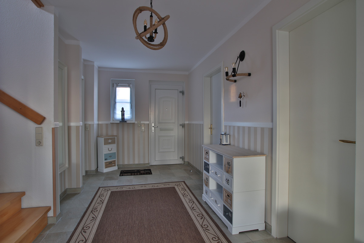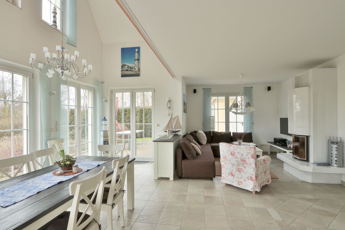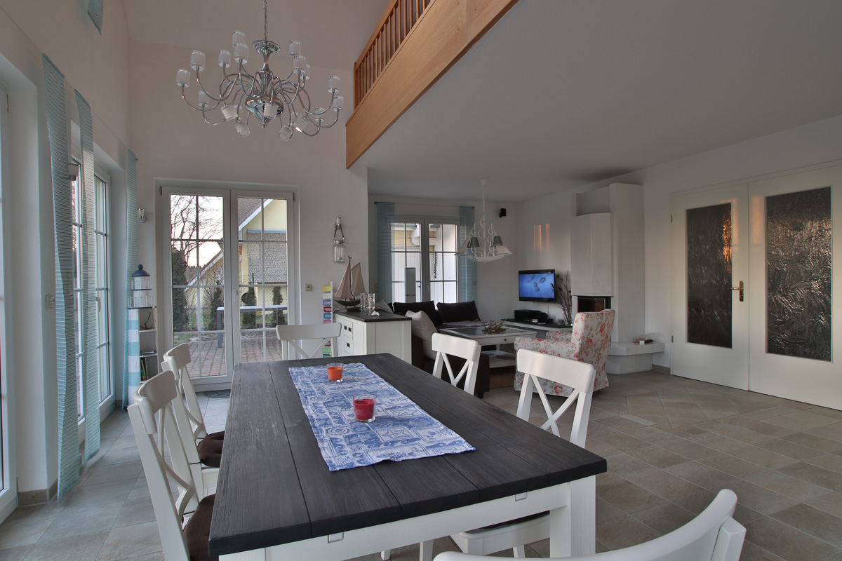 Das Ferienhaus hat eine Wohnfläche von 190 m², mit einem Gartenanteil von 300 m². 2 Schlafzimmer sind mit Doppelbetten ausgestattet (180 x 200 cm) und in 2 weiteren Schlafzimmern stehen je ein Doppelbett und ein Einzelbett. Die Einzelbetten sind 140 x 200 cm groß. Ein Badezimmer mit Dusche befindet sich im Untergeschoss und ein Bad mit Dusche und Wanne befindet sich im Obergeschoss. Ein Fön ist auch vorhanden. Im Hauswirtschaftsraum finden Sie eine Waschmaschine. Schöne Stunden in geselliger Runde können Sie im Obergeschoss im Billiardzimmer mit Musikbox verbringen. Das Ober- und das Dachgeschoss sind komplett mit Holzparkett ausgelegt. Das gesamte Haus wird über eine Fußbodenheizung beheizt. Im Wohnzimmer finden Sie eine gemütliche Sitzecke, TV und Radio, CD- und DVD-Spieler sowie einen großen Esstisch. An kalten Tagen sorgt ein Kamin für Gemütlichkeit. Die offene Küche hält alle modernen Geräte vor, wie Geschirrspüler, Herd mit Backofen, Mikrowelle, Kühlschrank mit Gefrierteil, Kaffeemaschine, Toaster usw. Im Erdgeschoß befindet sich ein separater Garderobenraum. Auf die kleinsten Gäste warten ein Kinderreisebett, ein Hochstuhl, ein Bollerwagen und eine Schaukel. An den Fenstern im Erdgeschoß sind Außenjalousien angebracht. Sämtliche Fenster sind mit Fliegengitter ausgestattet.Vom Wohnzimmer gelangen Sie auf eine Terrasse. Im Garten stehen noch ein Strandkorb und hier gibt es eine Tonnen-Sauna.