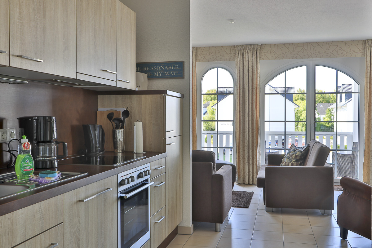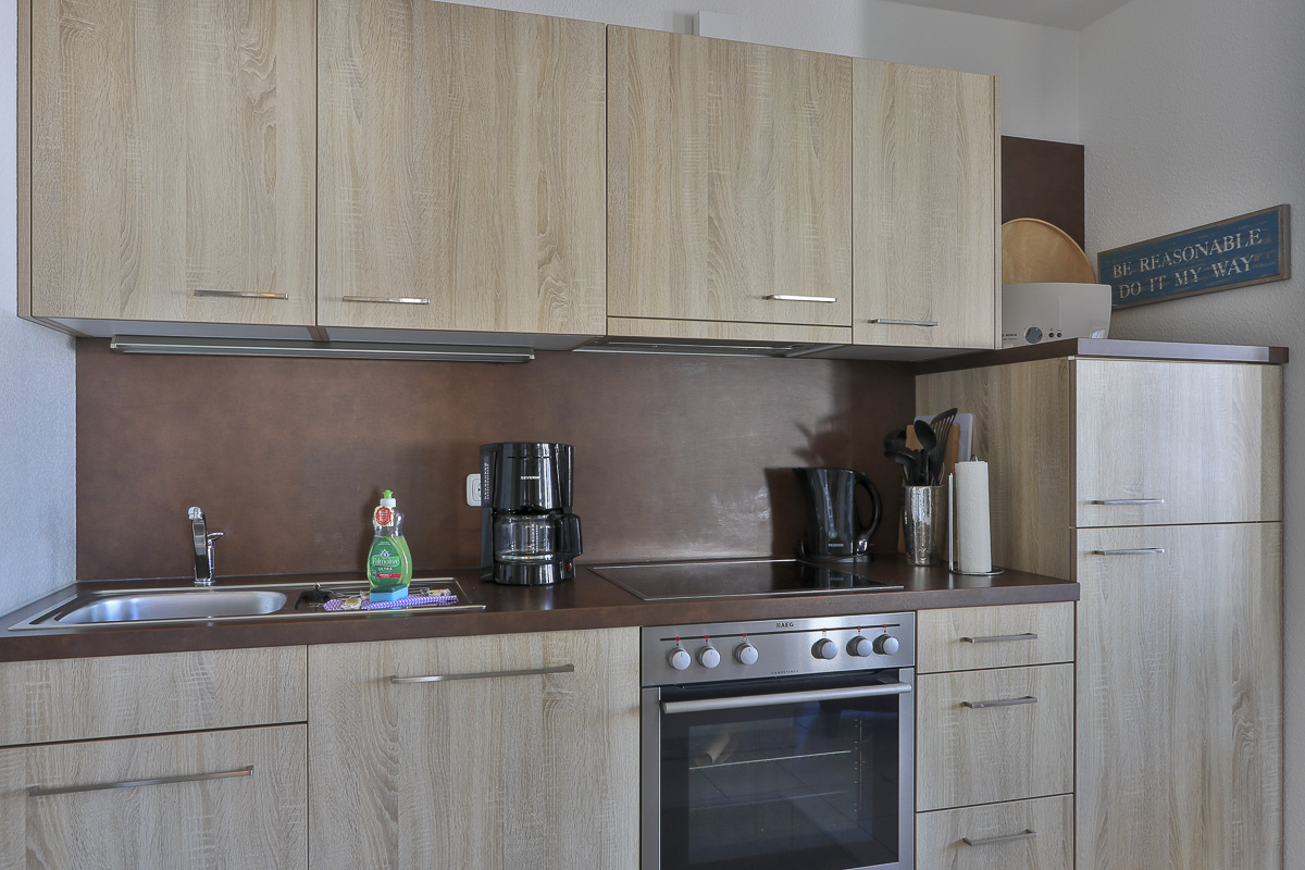 Die wunderschöne Ferienwohnung befindet sich im 1. OG und hat ein Wohnzimmer mit überdachten Balkon, bequemer Couch, TV, CD und DVD-Spieler. Die modern eingerichtete Küchenzeile ist voll ausgestattet mit Geschirr, Besteck, Herd, Backofen, Geschirrspüler, Kühlschrank mit Gefrierteil,Kaffeemaschine und Toaster. Den Gästen steht kostenfrei WLAN zur Verfügung. Das Schlafzimmer hat ein Doppelbett in der Größe von 180x200 cm. Das Tageslichtbad hat eine großzügige Dusche. Im vorhandenen Fahrradabstellraum können Sie Ihre mitgebrachten Räder sicher unterbringen.
