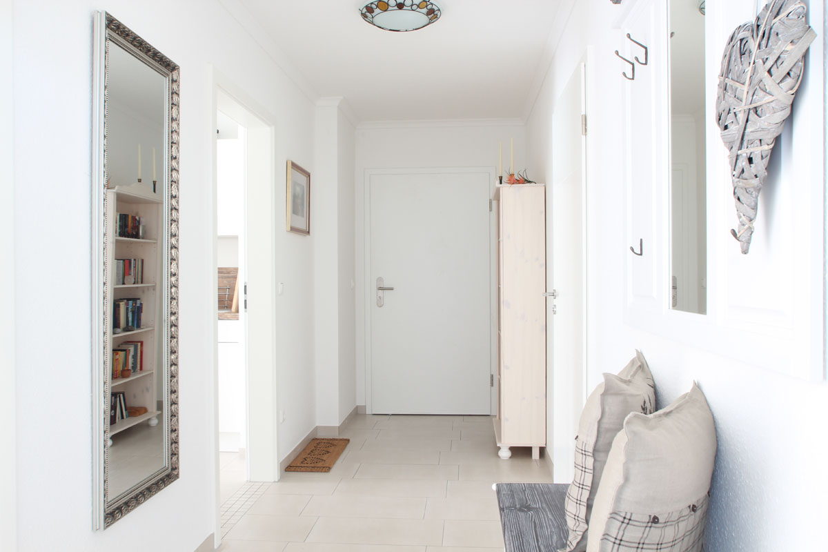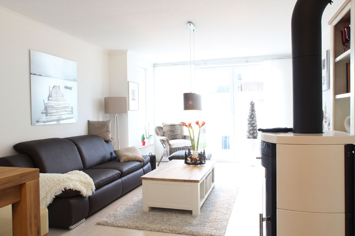 Das Appartement ist 73 m² groß und hat 2 Schlafzimmer und ein Wohnzimmer mit offener Küche. Die Schlafzimmer sind mit Doppelbett, Größe 140 x 200 cm und einem Doppelbett (180 x 200 cm), ausgestattet. Im Wohnbereich befinden sich TV und Radio, CD und DVD-Spieler sowie ein Kamin. Ein 2. Fernseher steht in einem der Schlafzimmer. Für die kleinsten Gäste stehen ein Kinderbett und ein Hochstuhl bereit. Die Küche ist mit allen modernen Küchengeräten, wie z.B. Geschirrspüler, Mikrowelle, Kühlschrank mit Gefrierteil, Toaster usw. ausgestattet.WLAN steht kostenfrei zur Verfügung. Die Wohnung ist komplett gefliest. Bis zum Strand sind es nur ca. 200 m. Der PKW-Stellplatz Nr. 12 befindet sich direkt am Haus.Ausstattung